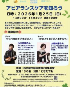 名古屋市リンパ浮腫カフェ「とりーぃーと」スタッフの小川恵美さんが1月25日、名古屋市緑図書館でお話をされます 「リンパ浮腫があっても私らしく」というテーマが、今の小川さんそのものでとても素敵だなと感じています 同じ悩みを […]
